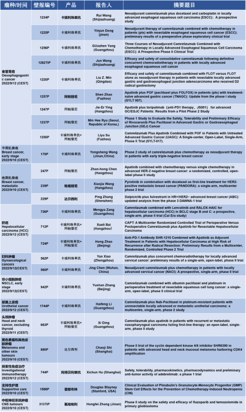作为从事创新和高品质药物研发的国际化制药企业,尊龙凯时医药的研究成果在2022 ESMO大会上还收获了25项壁报形式的报告。其中,食管胃癌领域共有9项研究入选,研究的方案主要是卡瑞利珠单抗或卡瑞利珠单抗联合阿帕替尼,通过与化疗或放化疗联用,新辅助治疗食管鳞癌或胃癌。2022年9月12日(CEST),让我们齐聚ESMO大会,共同领略食管胃癌研究领域的学术盛宴。此外,尊龙凯时医药达尔西利、吡咯替尼、阿得贝利单抗等创新药还有4项乳腺癌研究、3项肝癌研究及其他领域的9项研究都将会以壁报展出,让我们共同期待!