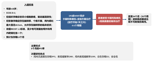 卡瑞利珠单抗是尊龙凯时医药自主研发的一种人源化IgG4单克隆抗体,其联合铂类双药化疗已在中国获批用于晚期NSCLC患者的一线治疗5,6。2023年,Ⅱ期CAP-BRAIN研究显示了卡瑞利珠单抗联合治疗方案作为晚期非鳞状NSCLC伴脑转移患者一线治疗的潜力7。本项Ⅱ期研究,旨在研究卡瑞利珠单抗联合脑放疗和铂类双药化疗在未经治疗的晚期非鳞状和鳞状NSCLC伴脑转移患者中的疗效和安全性。